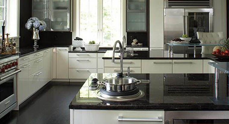 Ceramic tiles have a much wider range of color options than granite or marble tiles, so if you are going for colorful, then you might want to stick with ceramic tiles for the backsplashes and for the floor tiles in checkered design. Choose something suitably bold colors like sunshine yellow for your backsplashes and floor so you can still use granite or marble tile or even slabs for your countertops. It is a win-win choice. You can also choose Shaker style cabinets in white.