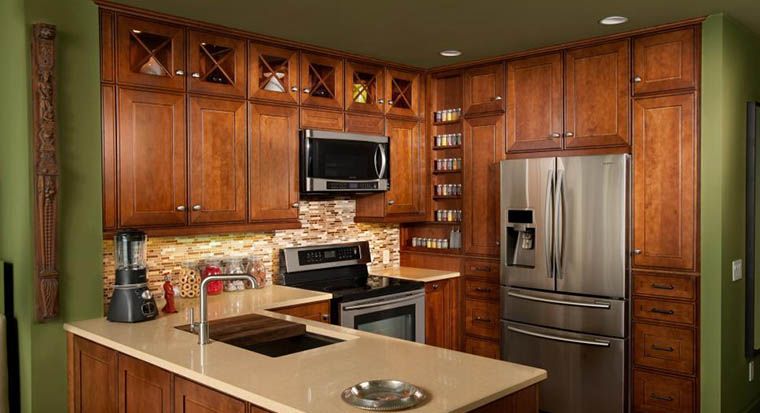 Apple green was a popular color for the midcentury style of kitchen, and it is airy enough for use in copious amounts in the kitchen, such as for kitchen cabinets. Pair them with white quartz countertops, and you will not know if you are coming and going. Add some vintage d?cor such as warehouse light fixtures, black and white diamond tile floors, and retro style appliances, and you will be swearing it is the 1940s.